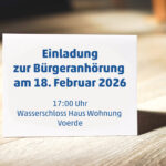 Juni 15, 2022Mit einer gut besuchten Bürgeranhörung am 18. Februar 2026 ist das geplante Hospiz am Wasserschloss Haus Wohnung in die nächste Phase gestartet. Rund 50 Bürgerinnen und Bürger nutzten die Veranstaltung in der ehemaligen Reithalle am Wasserschloss Haus Wohnung, um sich über den Planungsstand zu informieren.